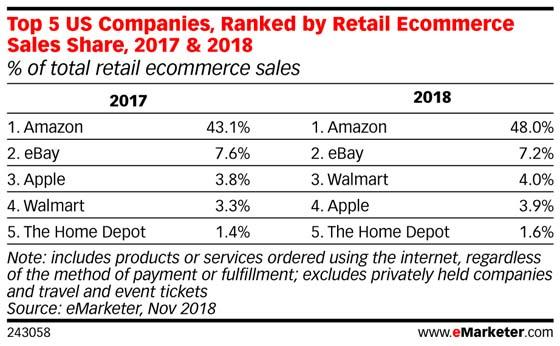 对于第二点,美欧日已经开始或考虑对亚马逊进行反垄断调查,但公司并不存在反垄断风险。18年公司电商销售额占全美电商市场的48%,在全美零售市场的占比仅为4.7%,在全球零售市场的占比不到1%,离垄断地位还差得远。