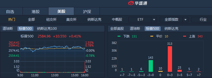 美联储鸽派纪要提振市场,美股三大股指收涨,道指四连涨,标普500指数收涨0.41%,道琼斯收涨0.39%,纳斯达克收涨0.87%。