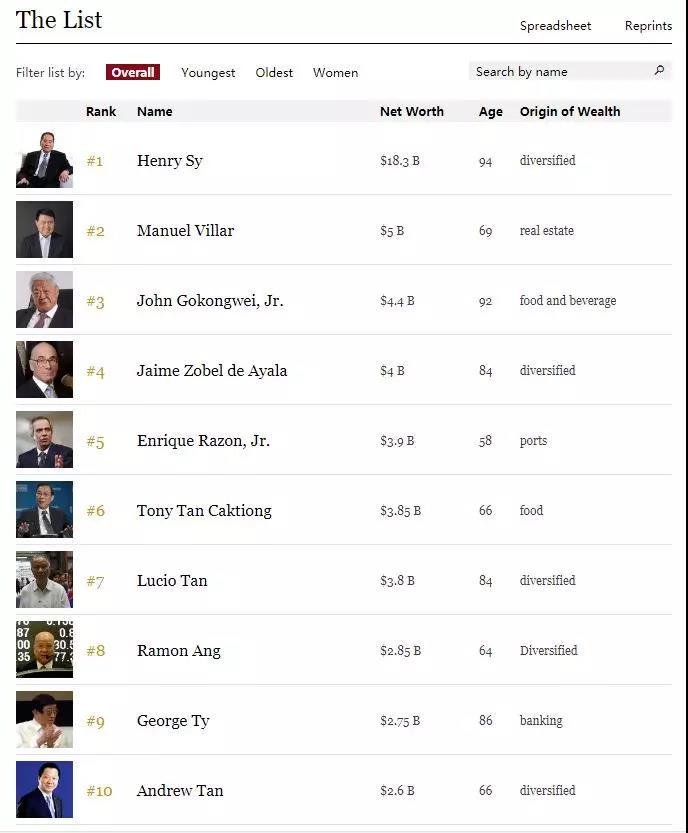 上榜的中国人还有一个共同的特点,基本都是福建人,跟着父辈来到菲律宾打拼,从一无所有开始,靠自己的拼搏获得成功。