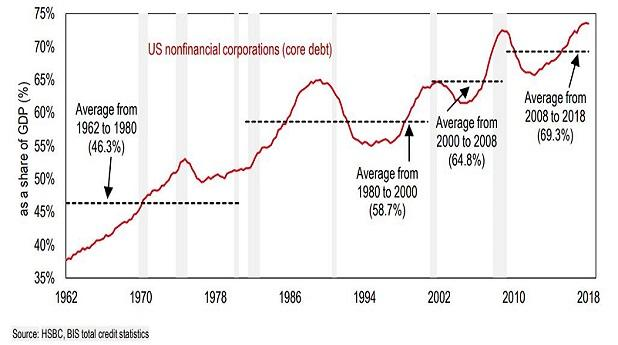 而错误造成的后果是企业信用风险达到历史最高水平。在“投资级”企业债务市场中,有一半的企业债评级只比“垃圾”(BBB)高一级,而当下非金融企业债务对GDP的恶劣影响也达到历史级的水平。