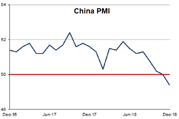 更需注意的是,上证综指18年收盘下跌25%,是08年以来中国股市遭受的最大跌幅,而中国的工厂活动为三年内最低,制造业活动实际上已经收缩。