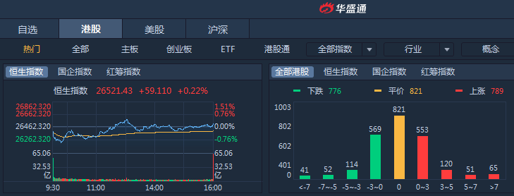 昨日恒生指数涨0.22%报26521.43点,全日成交额达956.67亿。国企指数涨0.35%,报10394.59点,红筹指数涨0.3%,报4242.57点。