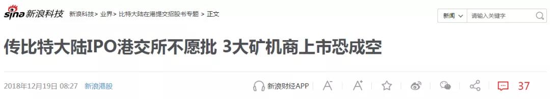 2018年12月17日,据Coindesk引述消息人士指,港交所犹豫是否批准中国比特币采矿设备制造商比特大陆Bitmain的IPO申请。