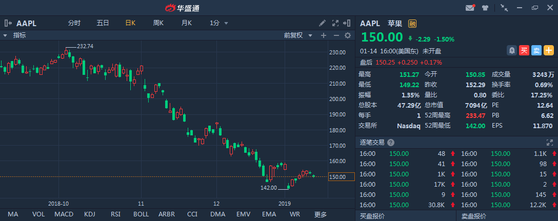 由于中美尚未达成贸易协议,以及美国政府停摆,公司的两个主要市场消费支出将会有所下降。同时,iPhone销售放缓影响将持续几个季度,所以本季度和下一季度的服务收入将出现明显的增速下滑。所以笔者认为,虽然苹果股价已从近期低点有所反弹,但尚未达到真正的底部。