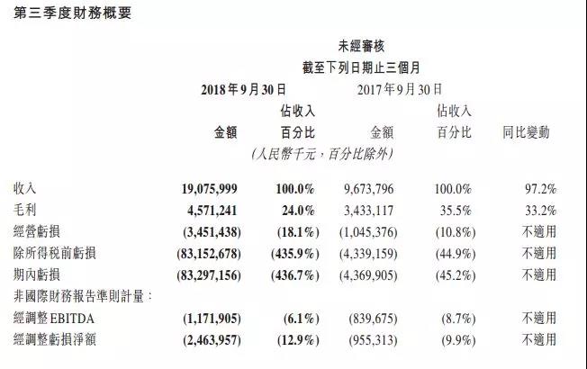美团于去年9月上市,截止18年Q3,累计调整后亏损66余亿,未调整亏损超过1,118亿,按照目前的趋势,预计2018年报亏损会同比加大。