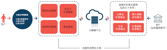 公司在中国运营首个及最大的公积金综合服务平台,为行业的先驱和领导者。向用户提供公积金管理服务,例如公积金数据检索、线上查询,积累拓展平台用户;并利用公积金数据作为信贷资源,通过与在商业银行、在线消费金融平台等机构合作,为用户提供多种金融产品服务,满足个人财务需求,变现用户及数据资源。