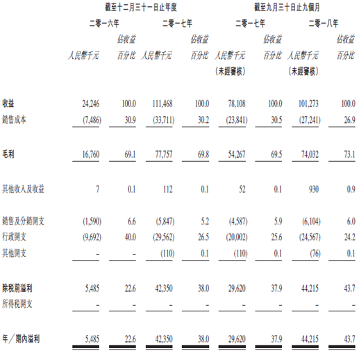 由于导流服务尤其是贷款促成业务的迅猛发展,公司营收从2016年的2424.6万元到2017年迅速增长为1.11亿元;盈利从550万元大幅提高为4235万元。2018年前三个季度,公司营收同比增长29%达到1.01亿元;盈利同比增长49%达到4421.5万。