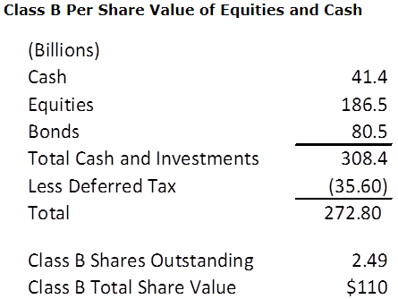 从下表可以看出,公司B级股票现金达到414亿美元。从并购和股票回购的角度来看,公司这笔海量现金,极有可能在股市低迷的时候使用。