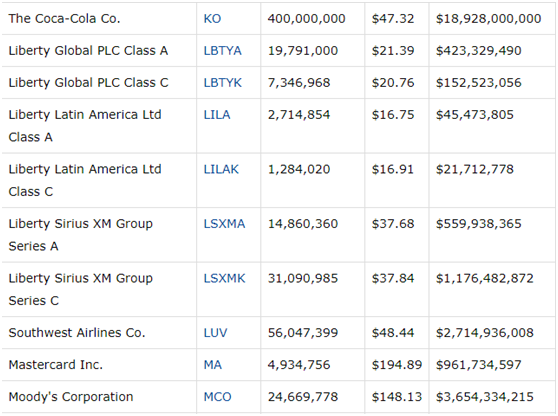 通过下表,投资者可以了解股神的持仓状况,如果作为被动投资者或者分散投资者,伯克希尔或许是个不错的选择,或许投资者也可以从股神的持仓,发现一些标的方面的灵感。