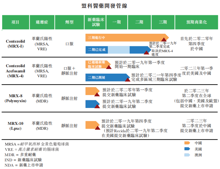 其中MRX-I和MRX-4为主力产品,均为治疗革兰氏阳性菌感染的药品。