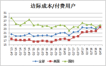 美国本土付费用户增长153万,符合预期;国际付费用户大增731万,大幅高于指引的610万。美国本土付费用户总计5850万,同比增长10.8%,国际付费用户总计8080万同比增长39.%,本土加国际的总付费用户13.93亿,同比增长25.9%