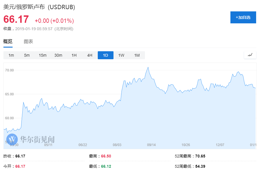 今年以来,卢布兑美元小幅升值,美元/卢布从去年年底近70下行至目前的66左右。