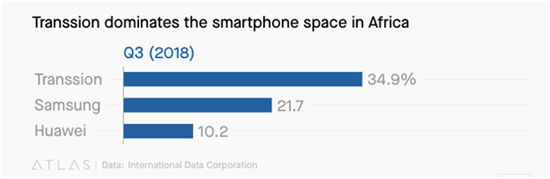 但非洲并非是未经开垦的处女地,传音(Transsion)、三星、华为早已进入该地区,并瓜分了近六成市场份额。据IDC数据显示,2018年三季度,传音、三星、华为在非洲的智能手机市场占有率分别为34.9%、21.7%和10.2%。