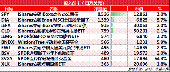 一周净流入前十: