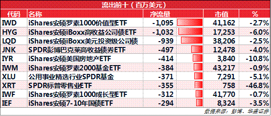 一周净流出前十: