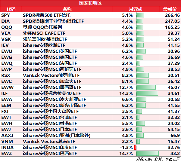主要ETF变动情况: