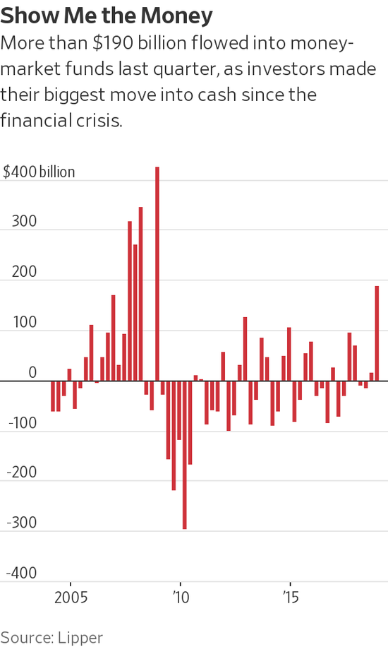 基金分析公司理柏(Lipper)截至上周四的数据显示,通常被用来观察现金流动情况的货币市场基金资产规模本月增加超过20亿美元。而去年最后三个月,投资者累计向这类基金注入了1,900亿美元,为2008年以来最大流入规模。