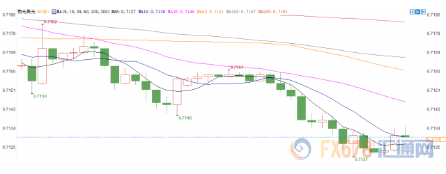 欧洲时段,澳元兑美元交投于0.7130,市场避险情绪继续升温,澳元兑美元跌至两周新低至0.7121,跌幅超0.4%,此前,中国GDP数据显示经济继续放缓的影响还在国际市场继续发酵,同时,投资者仍担心国际贸易摩擦风险可能并不会如想象中那么快地就得到缓和;这使得市场避险情绪在时段内持续走强,亚洲各国股市和美股股指期货悉数走低,受贸易环境影响深刻的澳元也首当其冲。