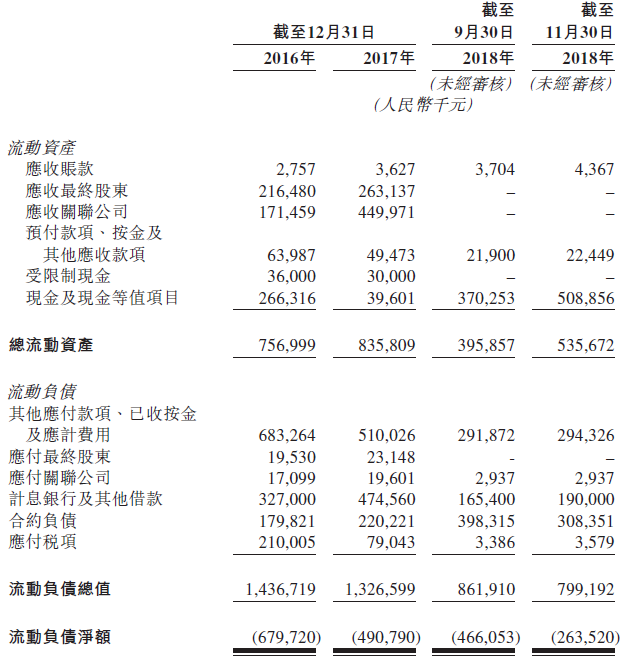 截至2018年9月30日,该集团有9.5亿元人民币的银行贷款及其他借款,2016年、2017年以及2018年前三季度,该集团的流动负债净额分别为6.8亿元、4.91亿元、4.66亿元人民币,资产负债比率分别为179.4%、197.7% 及116.7%。对于产生流动负债净额的原因,主要是由于各学年初向学生收取的学费及住宿费等尚未确认为收益,以及产生大量银行贷款及其他借款以支持校舍建设,和校舍建设产生的巨额应付款项等。