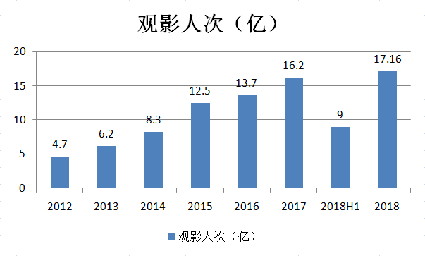 根据弗若斯特沙利文咨询公司的数据,尽管我国电影市场经历了高速增长,2012年至2017年的复合增长率超过了26%,在2018年,我国也电影票房突破600亿,达到了609.76亿元,但是同比增长9%,跌破双位数。观影人次则17.16亿,同比增长仅5.9%。