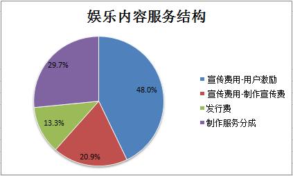 2)娱乐内容服务,包括发行费,宣发费用和电影制作分成三方面;