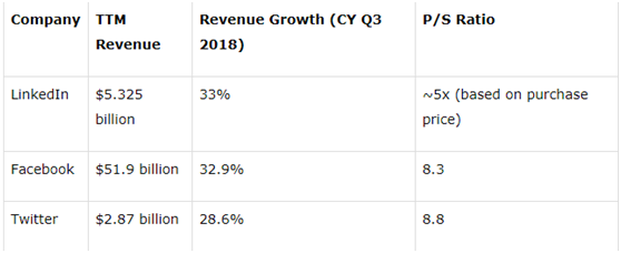 如果以其他两个平台的估值水平来对领英进行保守估计,领英的价格应该达到455亿美元的水平,比微软当年收购价格高出74%,年化收益率达到28%。
