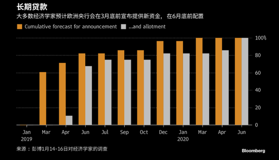 为了缓解对过早退出非常规政策的担忧,德拉吉可能会就欧洲央行研究向银行提供长期贷款发表新的见解。现有贷款将从2020年6月开始陆续到期,管理委员会在上个月的会议上建议“重新审视”它们在刺激经济增长方面作出的贡献。大多数经济学家预计正式声明会在3月底前公布,新资金的配置会在6月底前进行。