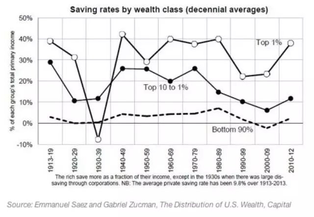 最低的90%的储蓄率至少从20世纪50年代中期到80年代中期逐渐增加,但从那时起,它已经崩溃。