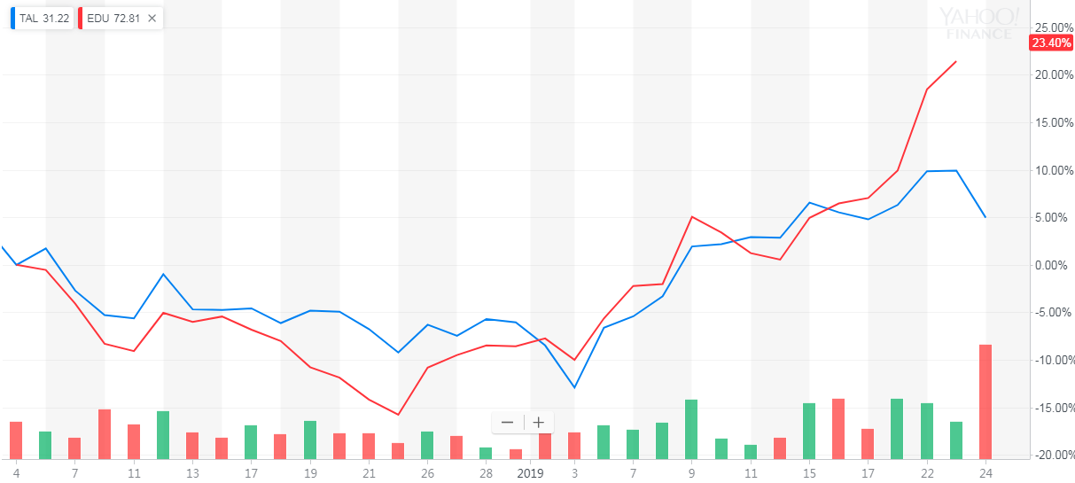 在政策不断收紧的情况,尽管新东方创下上市以来最大季度亏损,但是其营收超出预期,其股价在财报公布当天大涨7.78%。不过,好未来尽管也超出市场预期,但其股价却下滑4.52%。