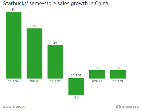 中国也是该公司增长最快的市场,第一季度同店销售额增长了1%。然而,交易量却下降了2%。