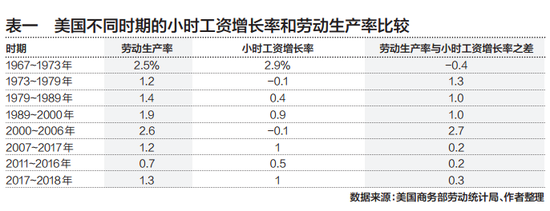 而劳动生产率增长要快于小时工资的增长,也是形成于80年代,并自那时起就成为美国经济的常态(如表一),既保证了资本利得,又从需求和供给的角力上基本保证了通货膨胀的可控性。