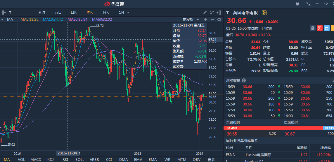 之前24日时笔者说过,股价在靠近27.5美元的关键支撑位置,跌破后可能引发大跌至23.8美元的水平。不过,公司股价一直保住了支撑位,从低点开始反弹。按股价当前涨势,有可能涨至31.5美元,不过该位置是一大阻力位,突破不了则可能出现大跌。整体而言,公司自16年7月达到近44美元的高位后,呈现明显跌势。另外,RSI相对强度指标约60,公司股价正接近超过超买位置,若超过70,股价有可能再现跌势。