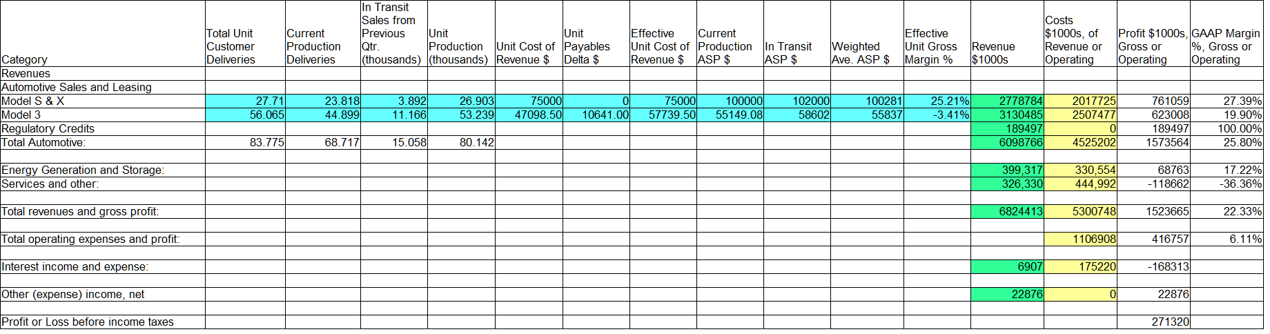 1.之前模型可能低估了Model S/X的平均生产成本,此前预计是每辆6.4万美元,对应到额外应收的增量,则平均生产成本每辆达到7.5万美元;若定义有效单元毛利率为(1-单元生产成本/平均售价),那么对应毛利率约为27%。因交付与生产几乎相当,可以认为Model S/X的销售毛利率即为27%。同理,测算出Q3 Model 3的毛利率约为27.4%。