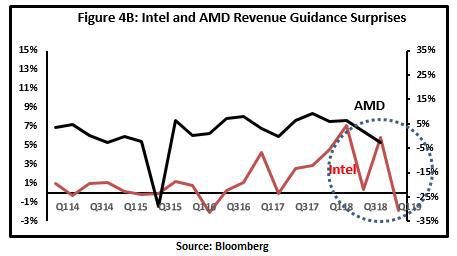 英特尔的指导性修订倾向于引导AMD的指导性修订,因为英特尔在AMD之前宣布收益,并且两者都直接在CPU领域展开竞争。