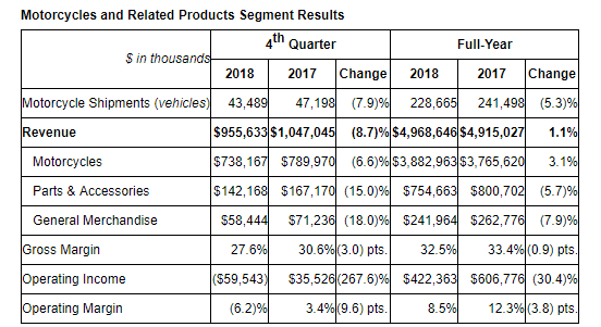 财报显示,四季度哈雷GAAP摊薄每股盈利为0;排除重组和关税成本,每股盈利17美分,不及市场预期的29美分,实际盈利和市场预期的差距创2009年四季度以来最大;摩托车及相关产品营收下滑8.7%至9.556亿美元。