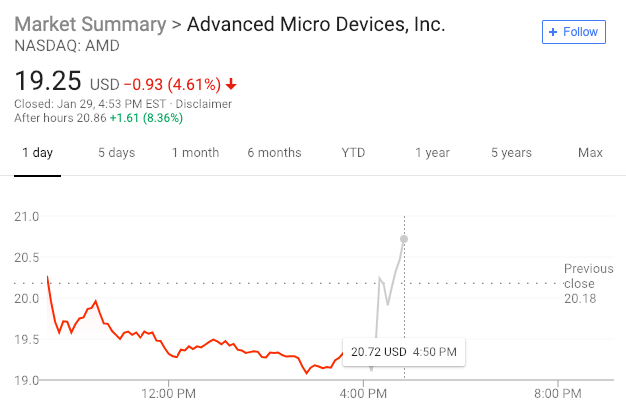 AMD利润达预期 股价盘后大涨8%