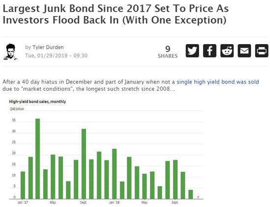 在去年12月和今年1月的部分时间里,由于“市场状况”,没有一只高收益债券被卖出,这是自2008年以来持续时间最长的一次。