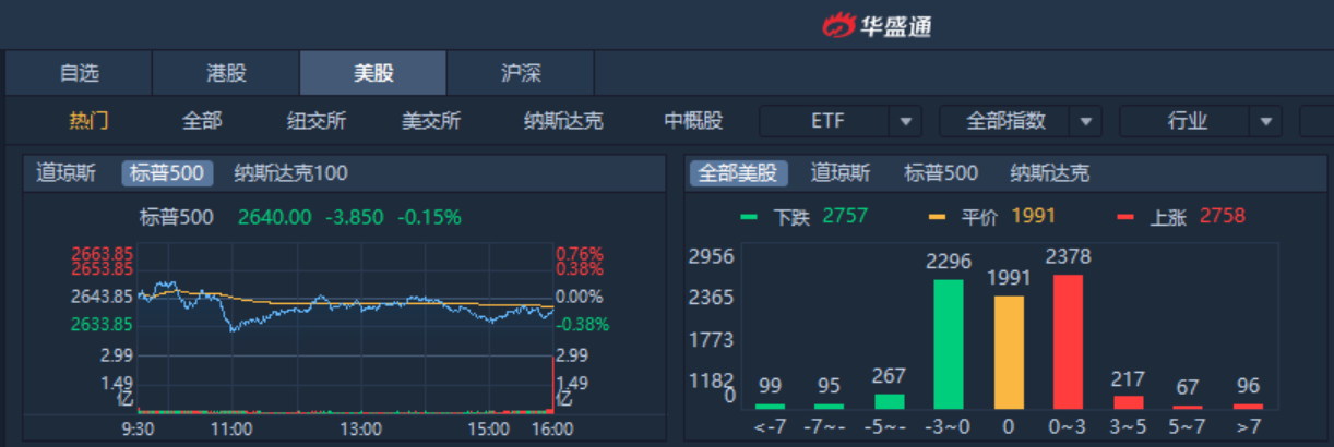 昨日道指成分股多数收涨,但科技股普跌拖累纳指,美股三大指数涨跌不一,标普500下跌0.15%,报2640.00点,道指涨幅0.21%,报24579.96点,纳指跌幅0.81%,报7028.29点。