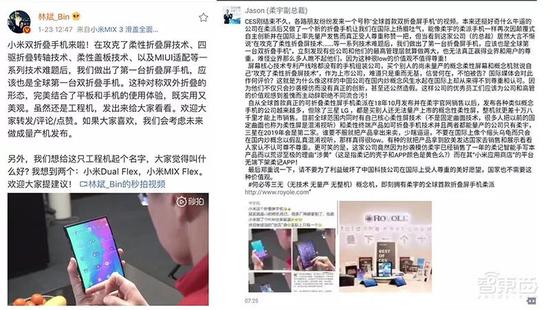 柔宇之所以杠上小米,最关键的争论点在于“折叠屏”手机。林斌在微博上对小米双折叠手机的描述有些歧义,尤其是“我们做出了第一台折叠屏手机”一句,给人一种小米自己攻克折叠屏技术之嫌,同时也暗指自家在折叠屏研发上有着先发优势,秒杀行业其他玩家。