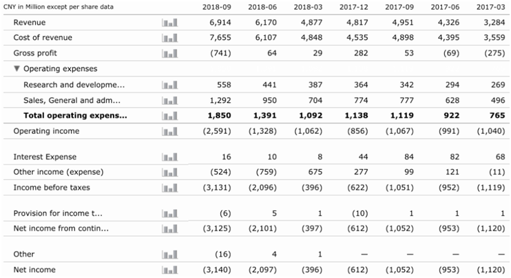 所幸的是,公司的净亏损主要原因还是投资活动增加,公司的经营活动产生的现金流始终保持正增长。虽然公司短期不能实现盈利,经营运作仍需以债务和股票融资筹集资金,但考虑公司背后拥有百度的支持,一定程度上可以解除公司资金困难的担忧。