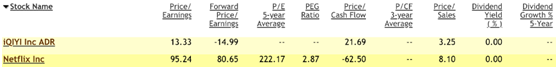 最近公司的目标价被下调,主要还是因为整体宏观环境的担忧。但是基于目前的估值指标,公司在市盈率、市现率、市销率远远低于奈飞。
