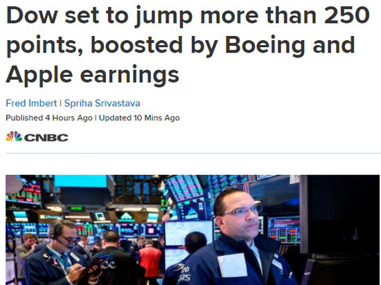 新浪美股讯 北京时间1月30日消息 美国股指期货周三盘前强劲攀升,波音与苹果在发布财报后均大涨5%以上。