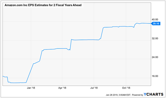 过去几个季度,分析师一直在上调对亚马逊的每股收益预期。