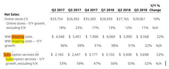 订阅Prime的主要原因之一是免费送货。运输成本也是亚马逊最大的支出。2018年第三季度,运输成本达到65亿美元。订阅收入为37亿美元。因此,该公司没有专注于增加销售,而是投资于流媒体等其他领域。