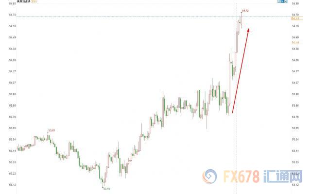 EIA数据公布后,美油涨幅一度扩大到2.64%,创去年11月23日以来新高至54.72美元/桶;布油涨幅扩大到2.04%,刷新1月22日以来高点至62.45美元/桶。