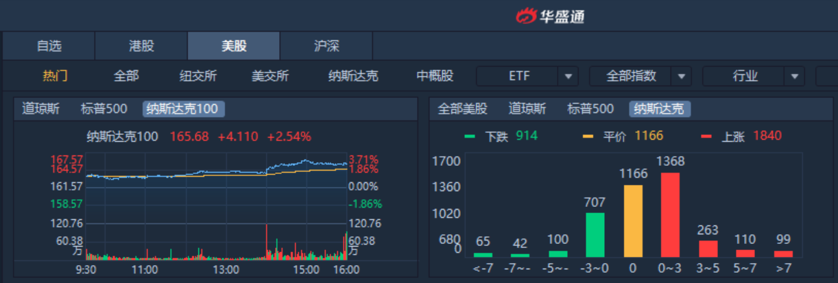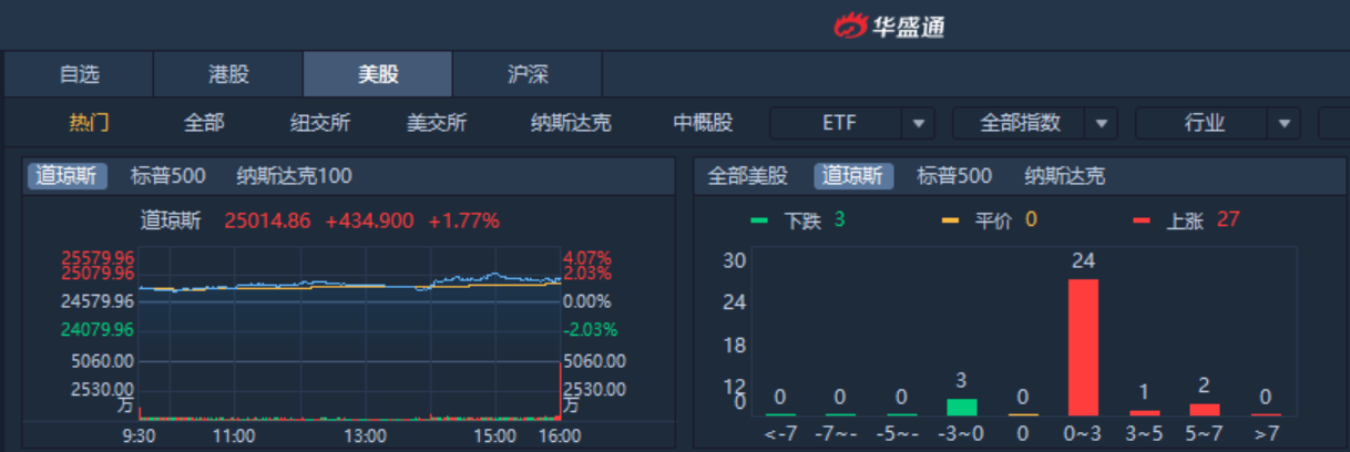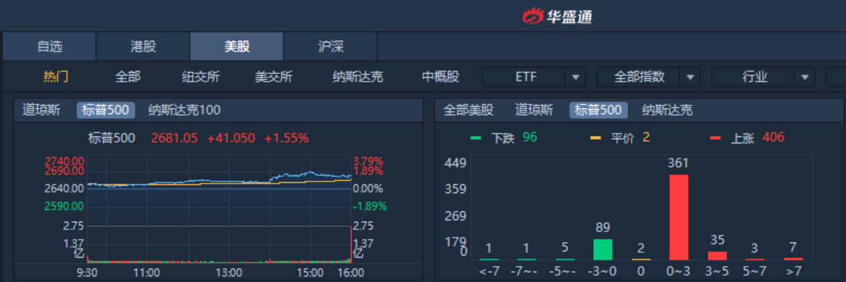 周三,市场受美联储鸽派声明和靓丽财报提振,美股三大指数全线收涨,标普500涨1.55%,道指涨1.77%,纳指涨2.20%。