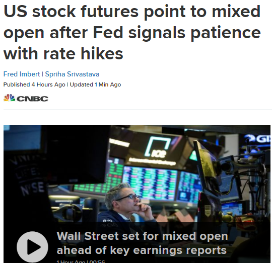 鲍威尔主席在新闻发布会上说,保持耐心是应对海外经济增长带来的下行风险增加、调查数据走弱和金融环境趋紧的有效措施。