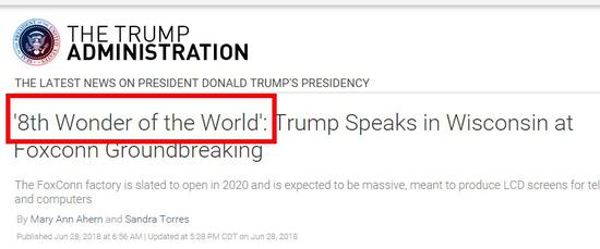 它一度被视作制造业回流美国的代表性项目,特朗普还亲自参加过这个厂的奠基仪式,并盛赞它为……世界第八大奇迹。(这比喻……