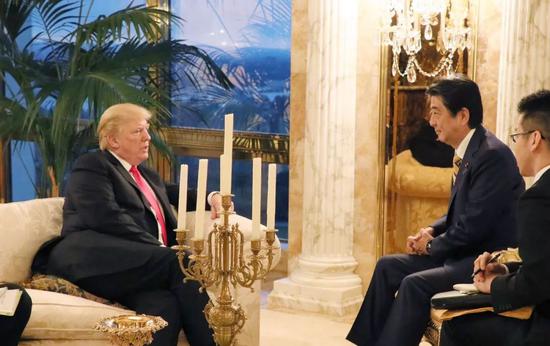 ▲资料图片:2018年9月23日,特朗普和日本首相安倍在特朗普大厦共进晚餐并举行会谈。