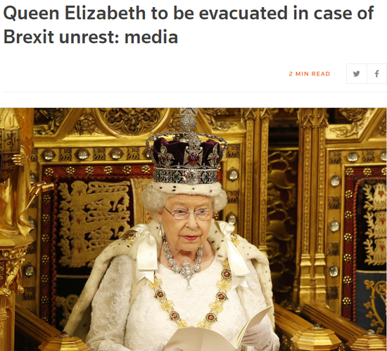 据英国媒体报道,英国官员重启了冷战时期的紧急计划,如果英国下个月的脱欧在伦敦引发骚乱,他们将重新安置英国皇室成员。